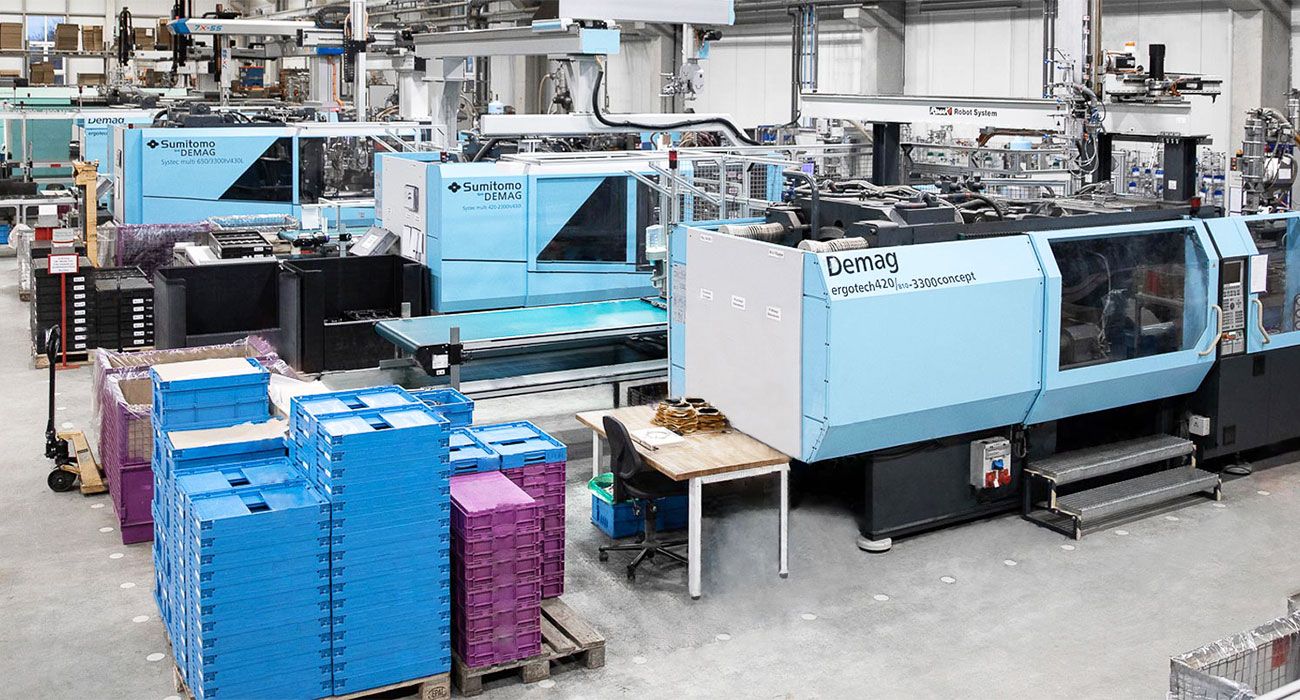 An unserem Standort in Manching verfügen wir über ein breites Sortiment an Spritzgießmaschinen von 25 Tonnen bis 1500 Tonnen Schließkraft. Mit diesen produzieren wir sowohl in gängigen wie auch sehr speziellen Spritzgussverfahren thermoplastische Teile bis zu einem Teilegewicht von 5200 Gramm.